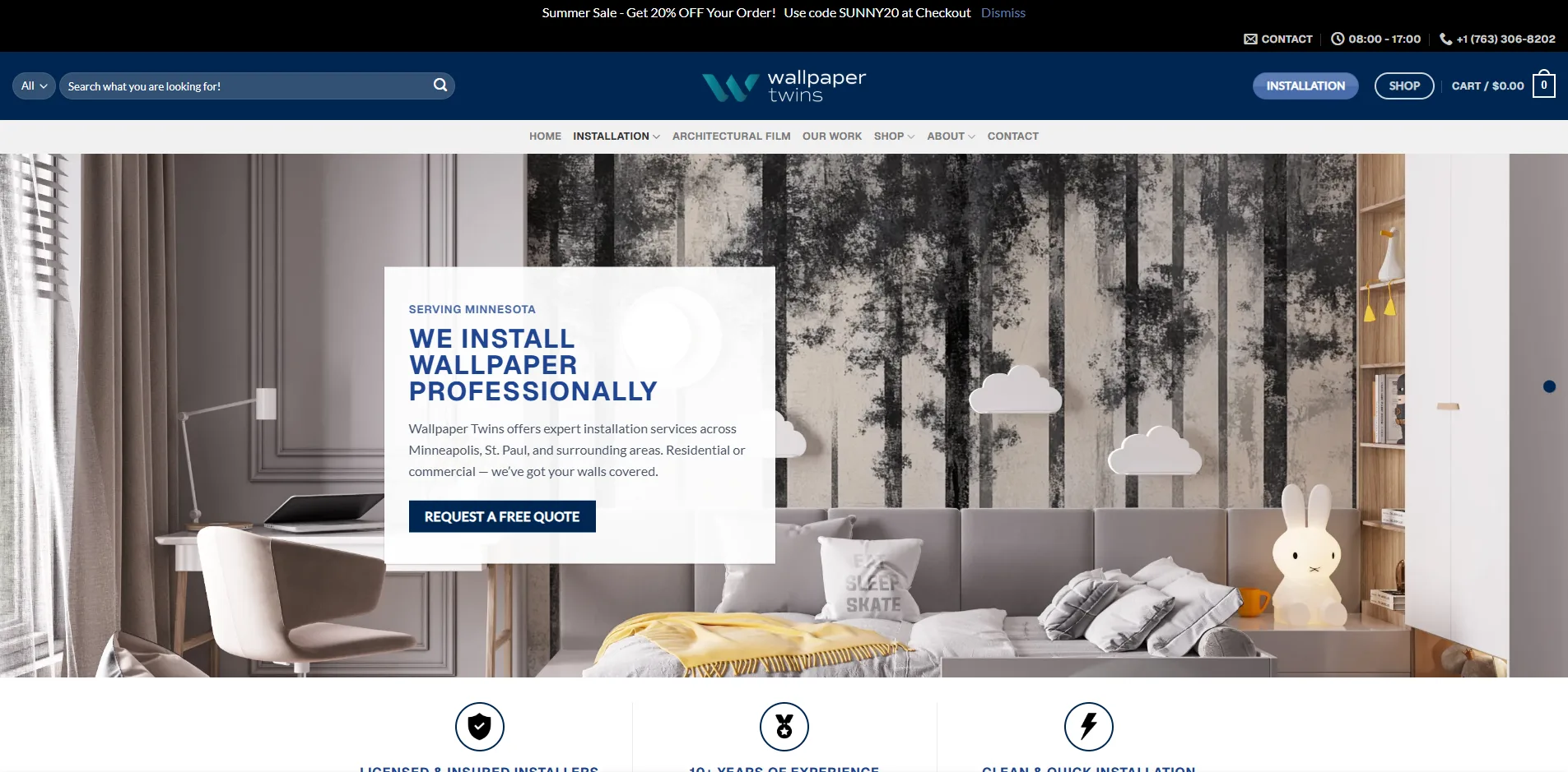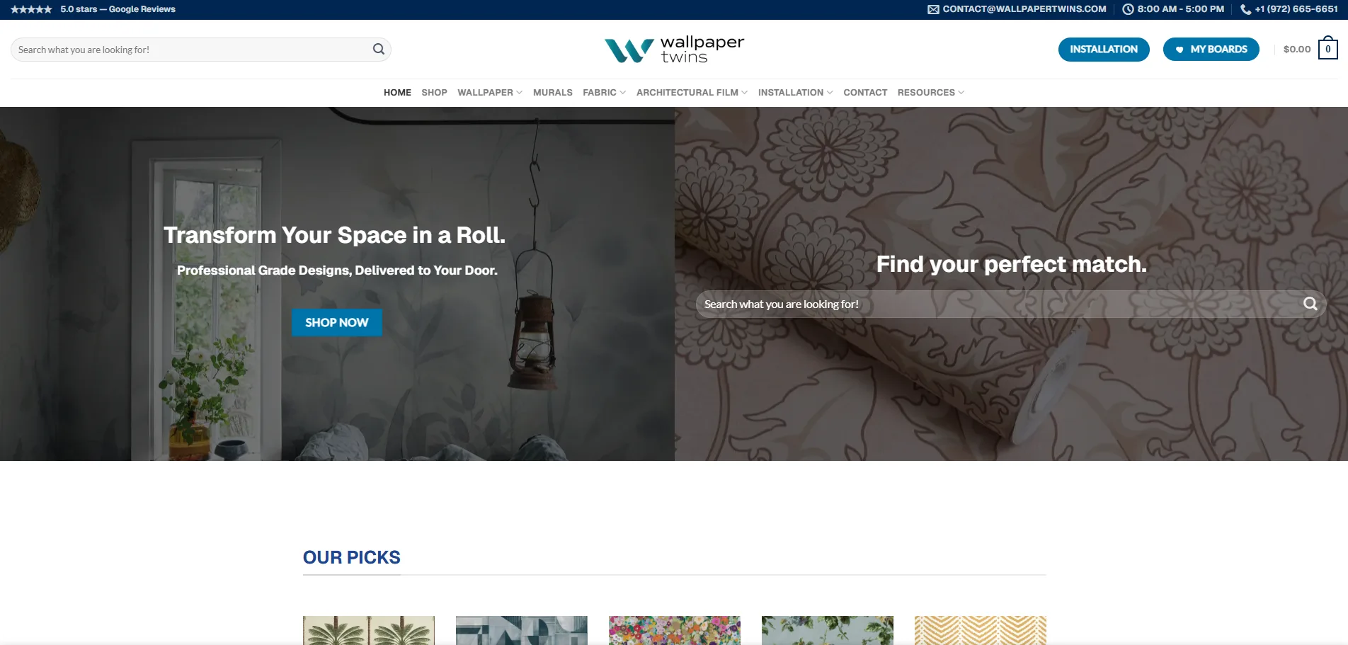 Wallpaper Twins, based in Minneapolis, Minnesota, is a leading wallpaper installation company and online retailer, offering a vast selection of wallpaper rolls and custom murals. Known for their precision, craftsmanship, and premium designs, Wallpaper Twins needed a digital platform that combined e-commerce functionality with service branding to serve both local installation clients and nationwide online shoppers.